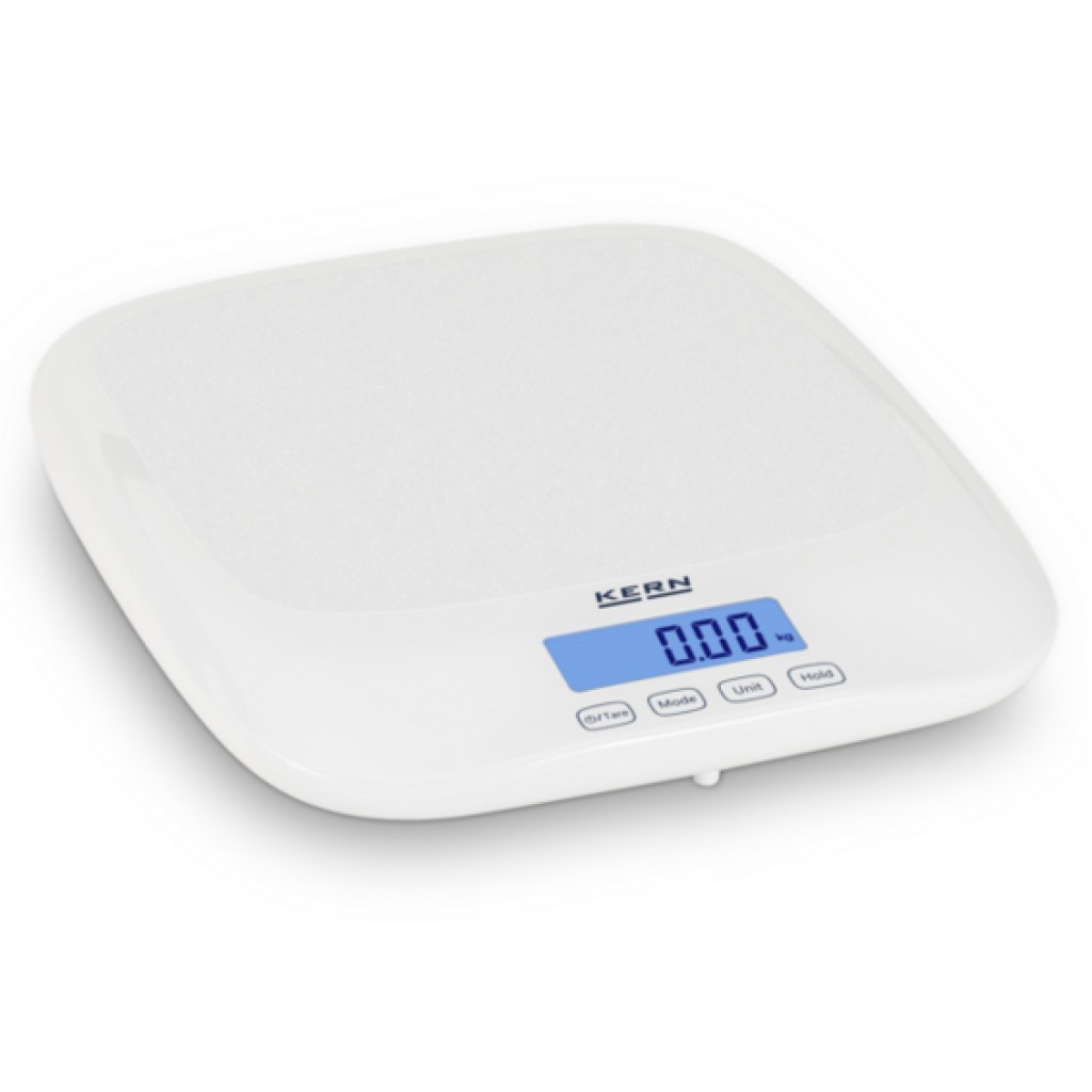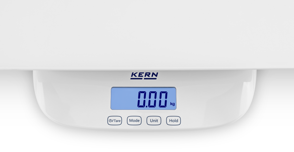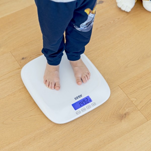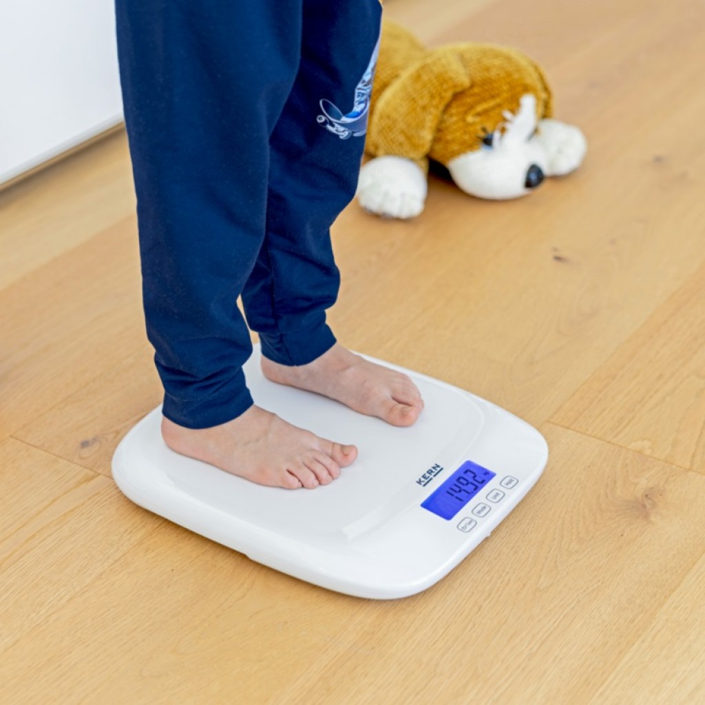 Bilancia KERN MBF progettata per la pesata di neonati e bambini, con vassoio dedicato e funzione genitore-figlio per una misurazione semplice e immediata. Utilizzabile anche come bilancia pesapersone fino a 100 kg, offre una superficie ampia e robusta per una pesata sicura e affidabile.