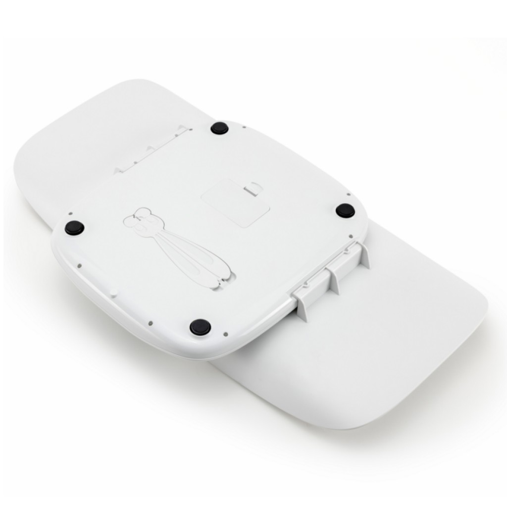 • Ampia superficie di appoggio in plastica robusta ergonomicamente ottimizzata per pesare i neonati in sicurezza. La superficie è igienica e facile da pulire.