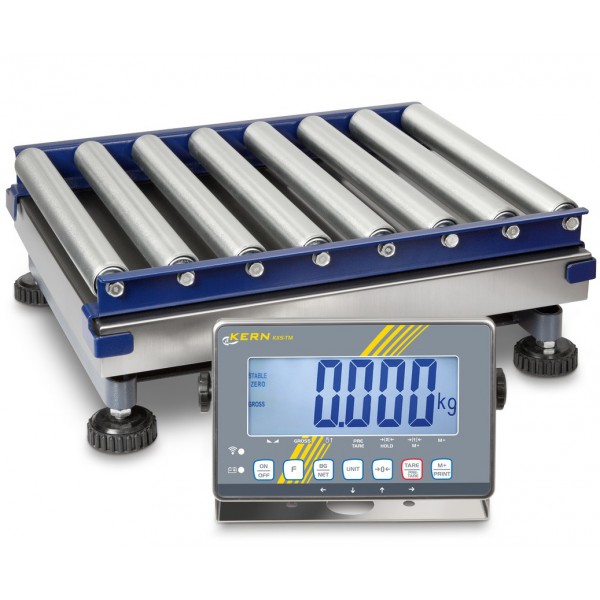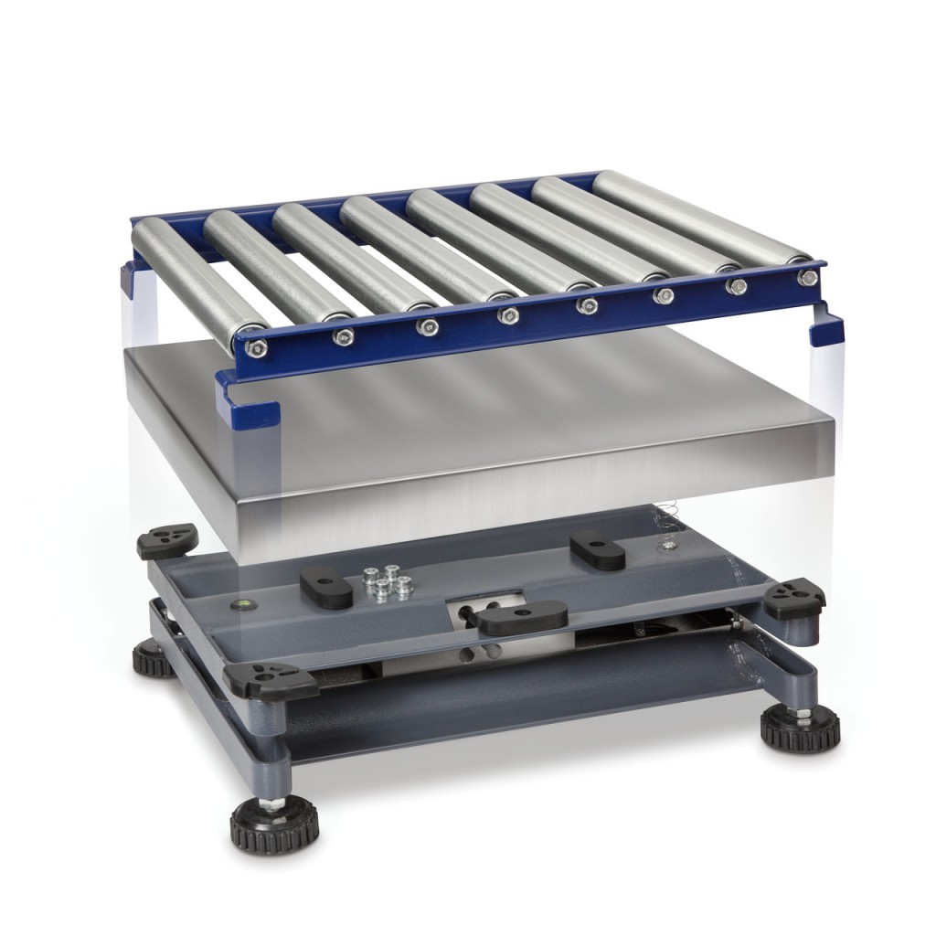 Supporto piattaforma a rulli KERN YRO per trasformare la vostra bilancia in un robusto sistema di misura per determinare in modo rapido e preciso il peso da inerfacciare su percorsi di trasporto in catene di mntaggio o postazioni di lavoro