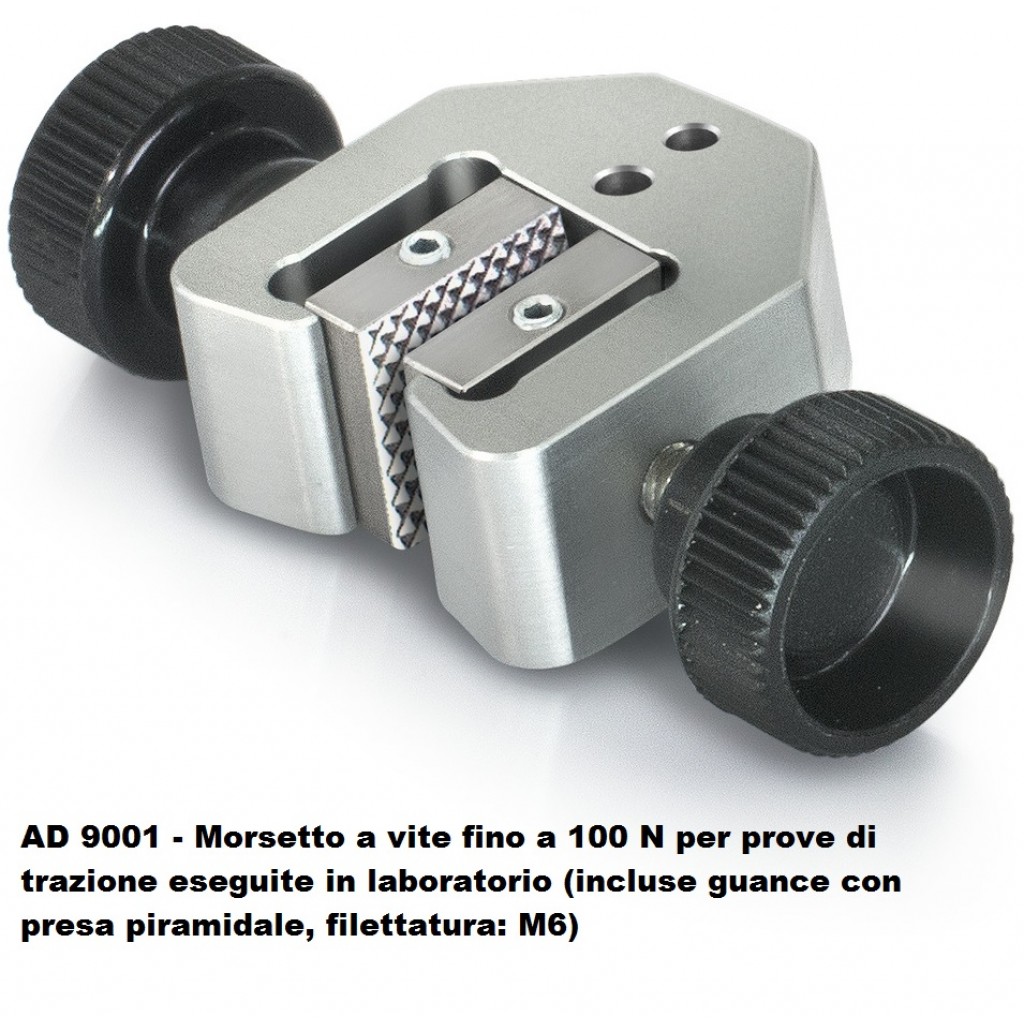 AD 9001 - Morsetto a vite fino a 100 N per prove di trazione eseguite in laboratorio (incluse guance con presa piramidale, filettatura: M6)