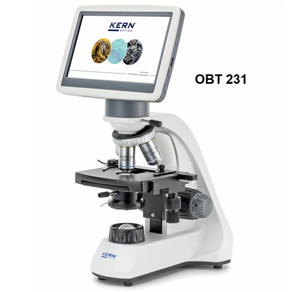 • KERN OBT 231: Microscopio digitale dotato di display LCD per la visualizzazione dei campioni, doppia alimentazione USB per microscopio e display, software per le misurazioni, interfaccia USB e slot per schede micro SD per documentare le registrazioni.