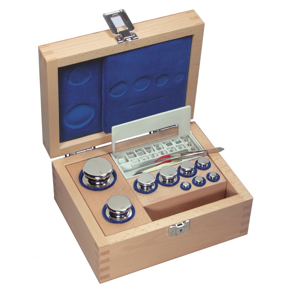 Classe F1 - Pesiere a bottone in acciaio inox lucidato con valigetta in legno